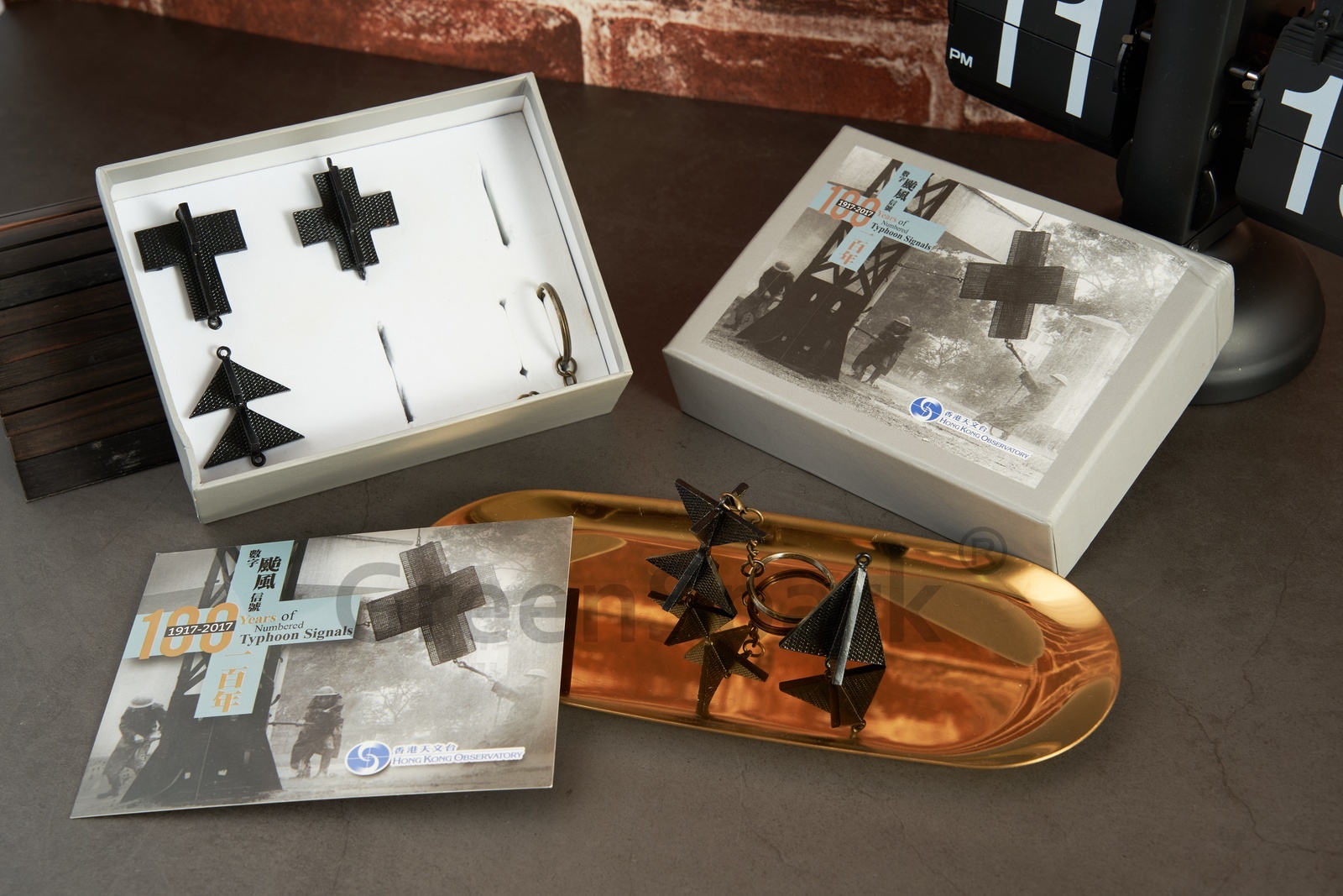 香港天文台採用數字颱風信號一百周年紀念,天文台與綠星火合作推出「數字颱風信號.合金鎖匙扣」。 綠星火團隊用心監製,工序精細,達精品級水準,成品令人愛不釋手。 百年歷史的數字颱風信號,現已從數碼屏幕走進現實,呈現於你我手中。