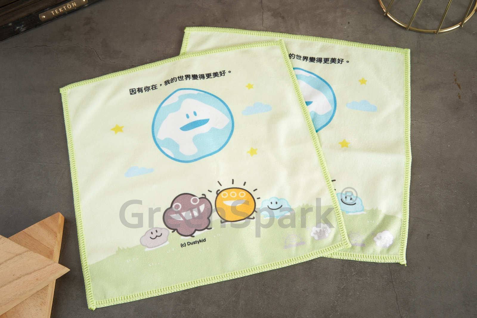 香港天文台「天氣家族」特別設計了一套八款環保小手巾作為小禮品。毛巾使用熱轉印印刷,圖案效果清晰、顏色亮麗,圓角包邊的工藝令毛巾更耐用。無論晴天雨天,攜帶小手帕,讓出行更方便環保。