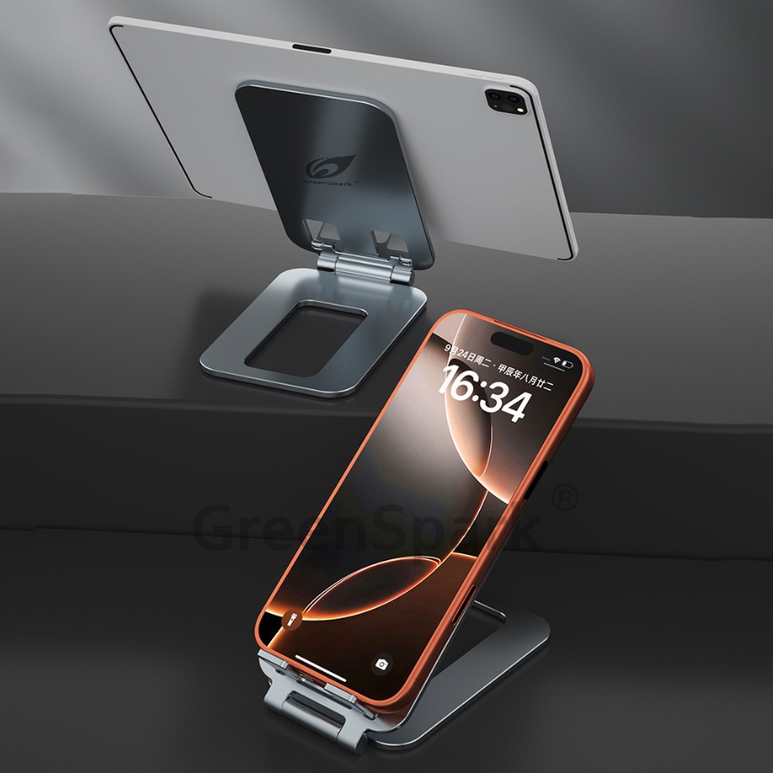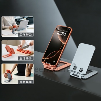 · 航空級鋁合金折疊手機支架,承重性強,輕韌兼備