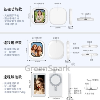 · 小巧便攜,背帶磁吸功能,適用街拍/合照等自拍場景