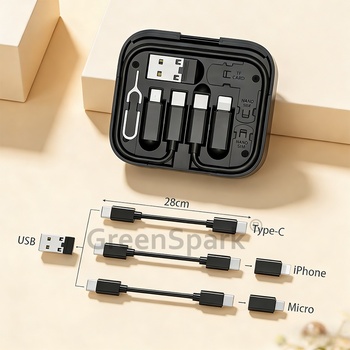 · 一盒多用便攜,數據線+轉接頭+取卡針+卡槽+化妝鏡+手機支架