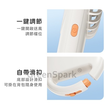 · 滑扣設計可在背包,也可做桌面風扇