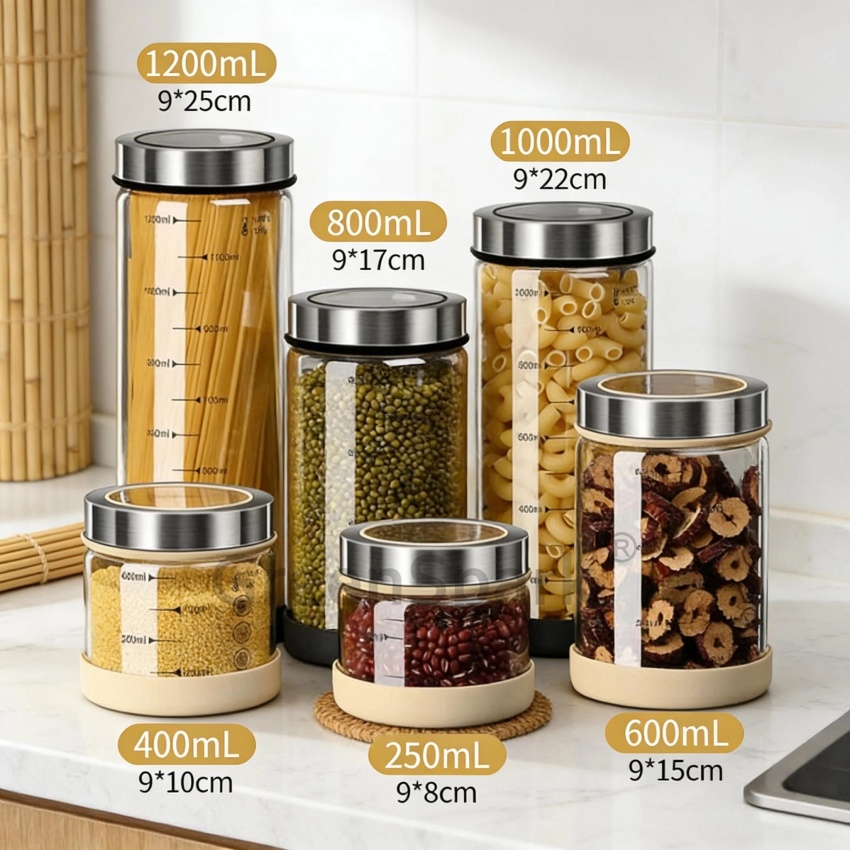 · 高硼玻璃儲物罐,硅膠墊圈密封防漏