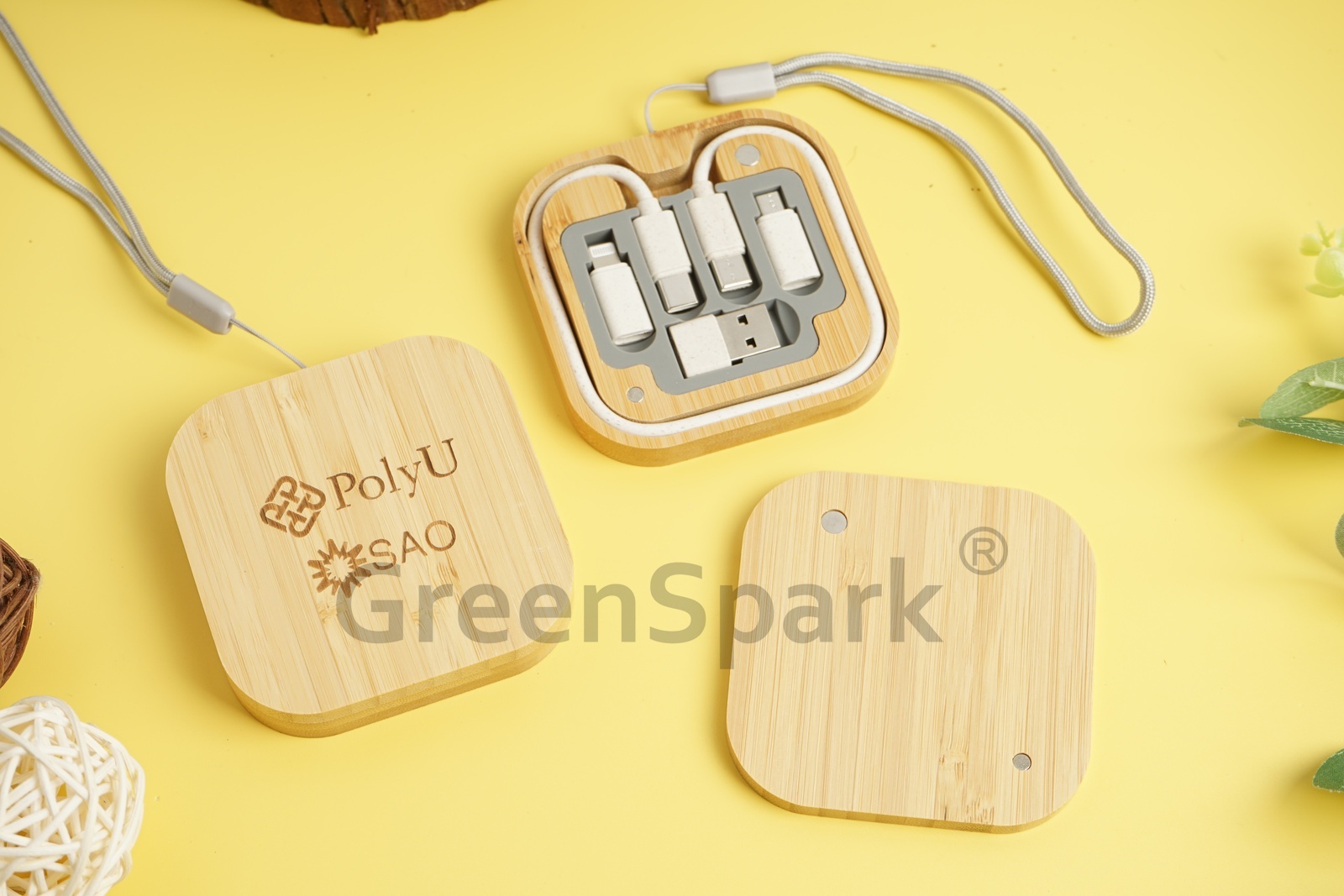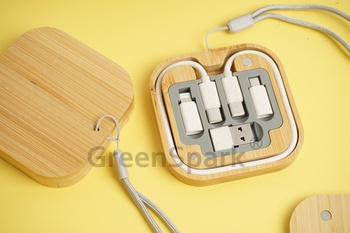 · 圓形竹木數據線理線盒,多款轉接頭禮品套裝